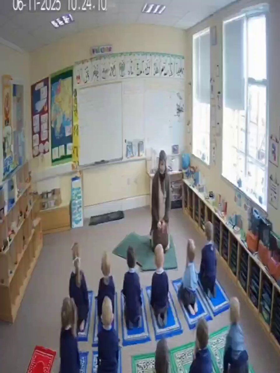 Class of White kids being taught how to pray, the islamic way.